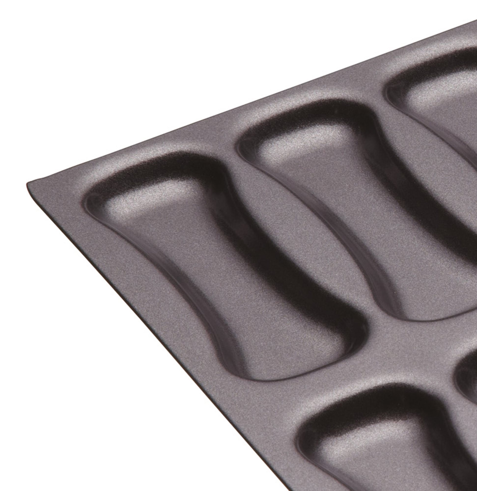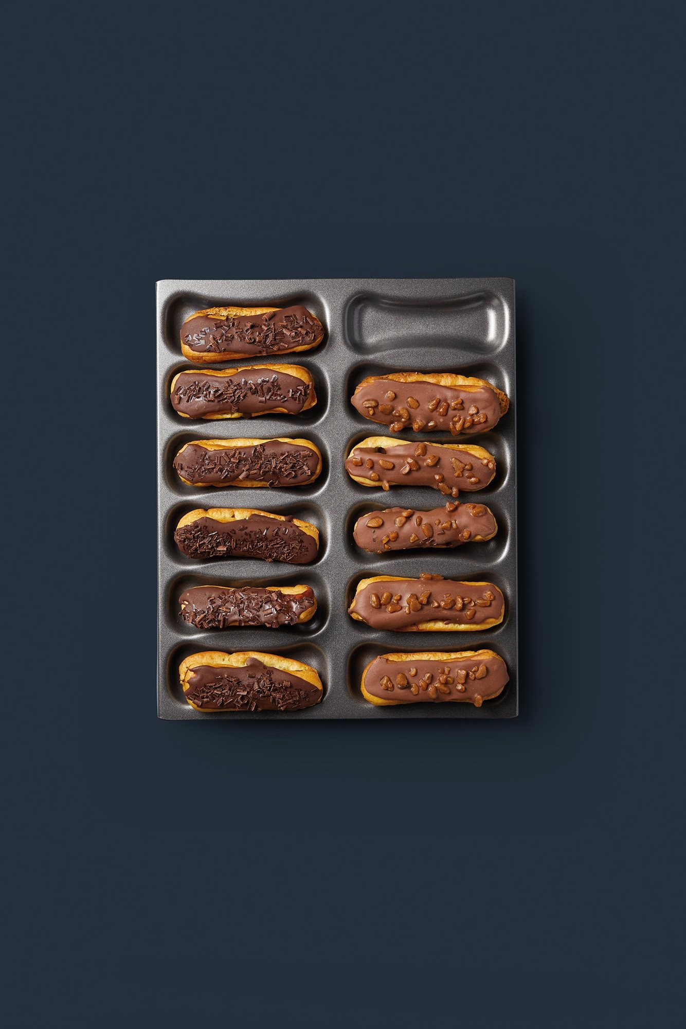 Kitchen Craft ekler sütőforma, méretei 31cm x 2.5cm x 16.5 cm, anyaga acél, 12 rekeszes.