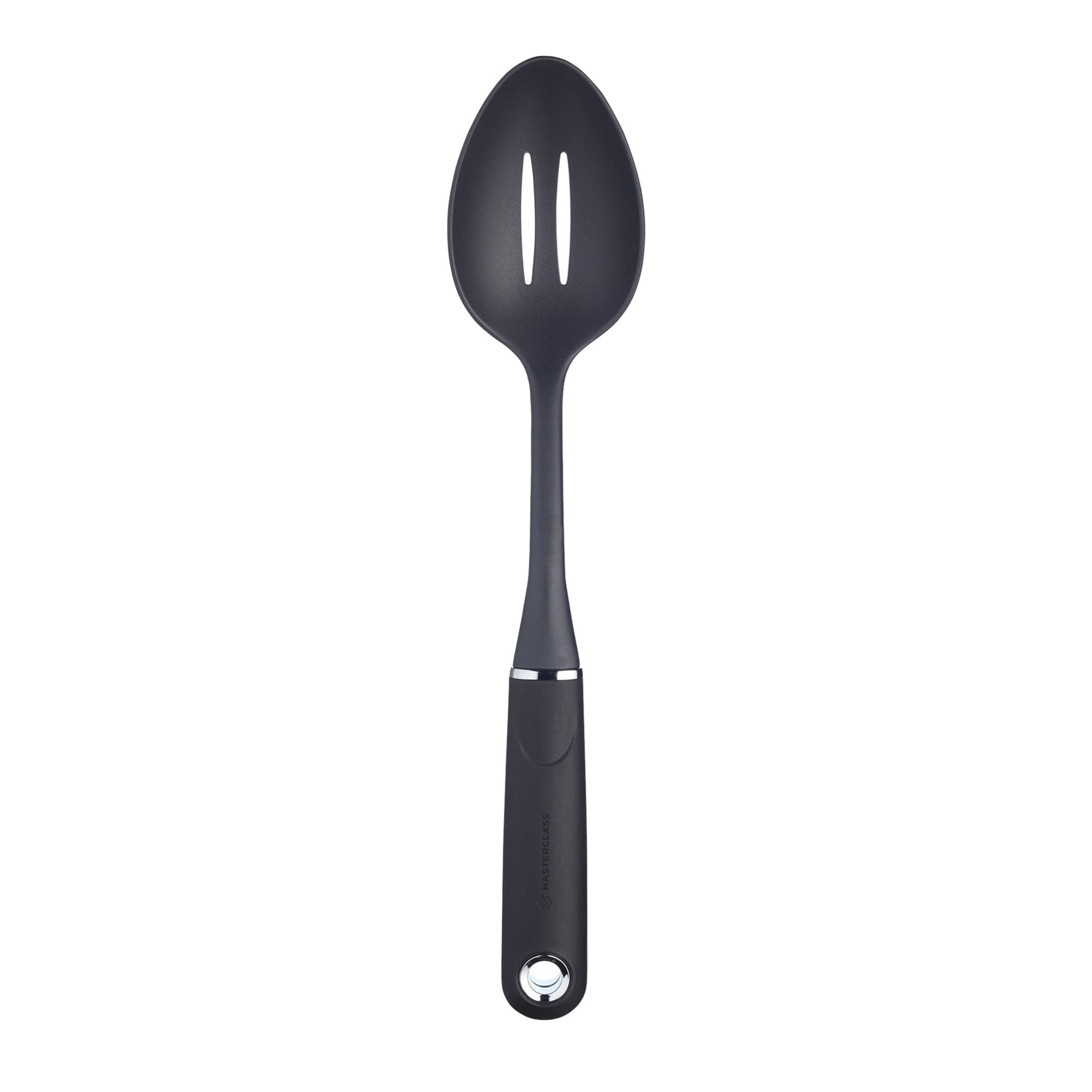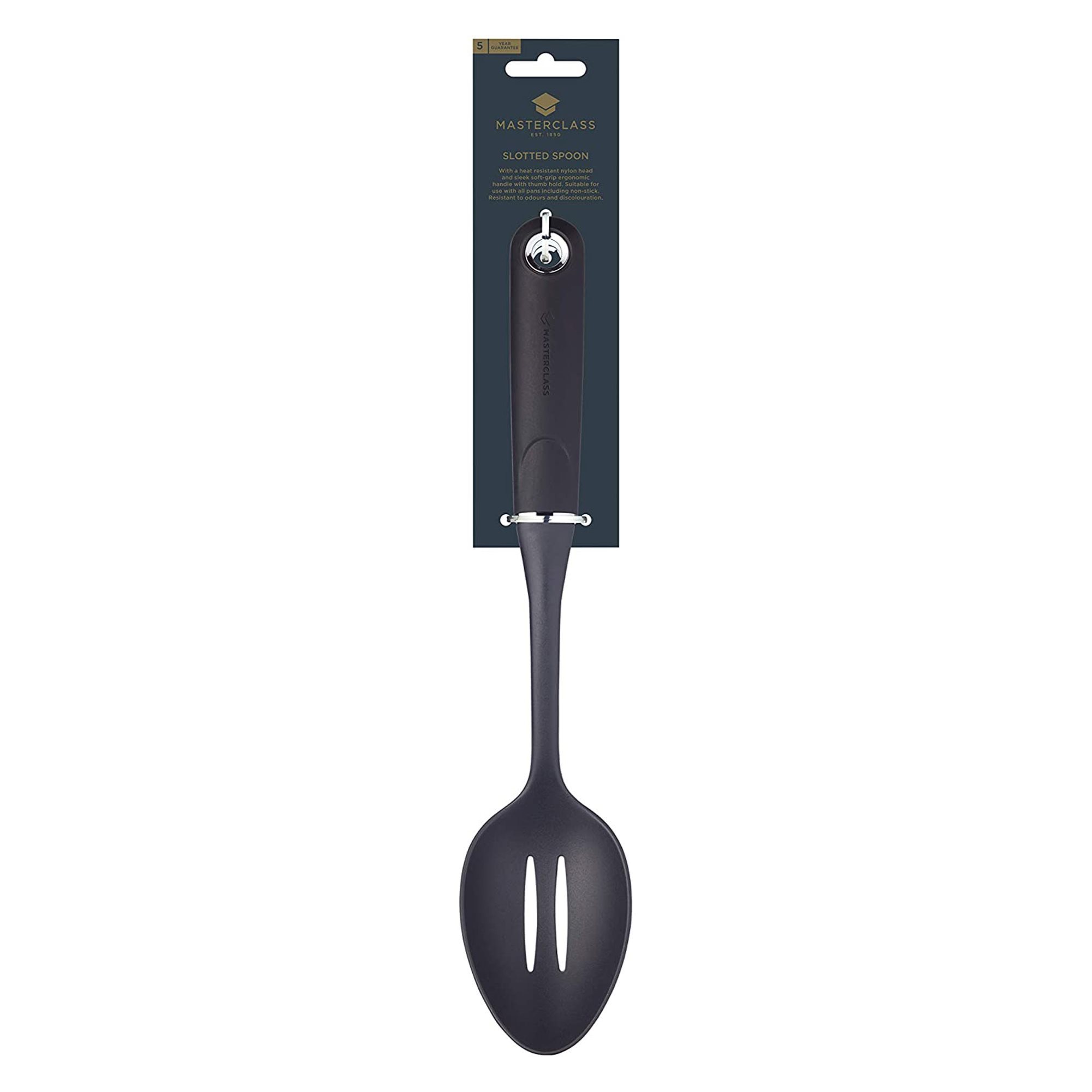 A folyadékok lefolyását lehetővé tevő nyílásokkal kialakított, puha nyelű, MasterClass termékcsaládból származó kanál ideális zöldségek vagy húsok serpenyőből vagy olajsütőből való kiemelésére, illetve kemény vagy lágy főtt tojások serpenyőről tányérra való áthelyezésére.
