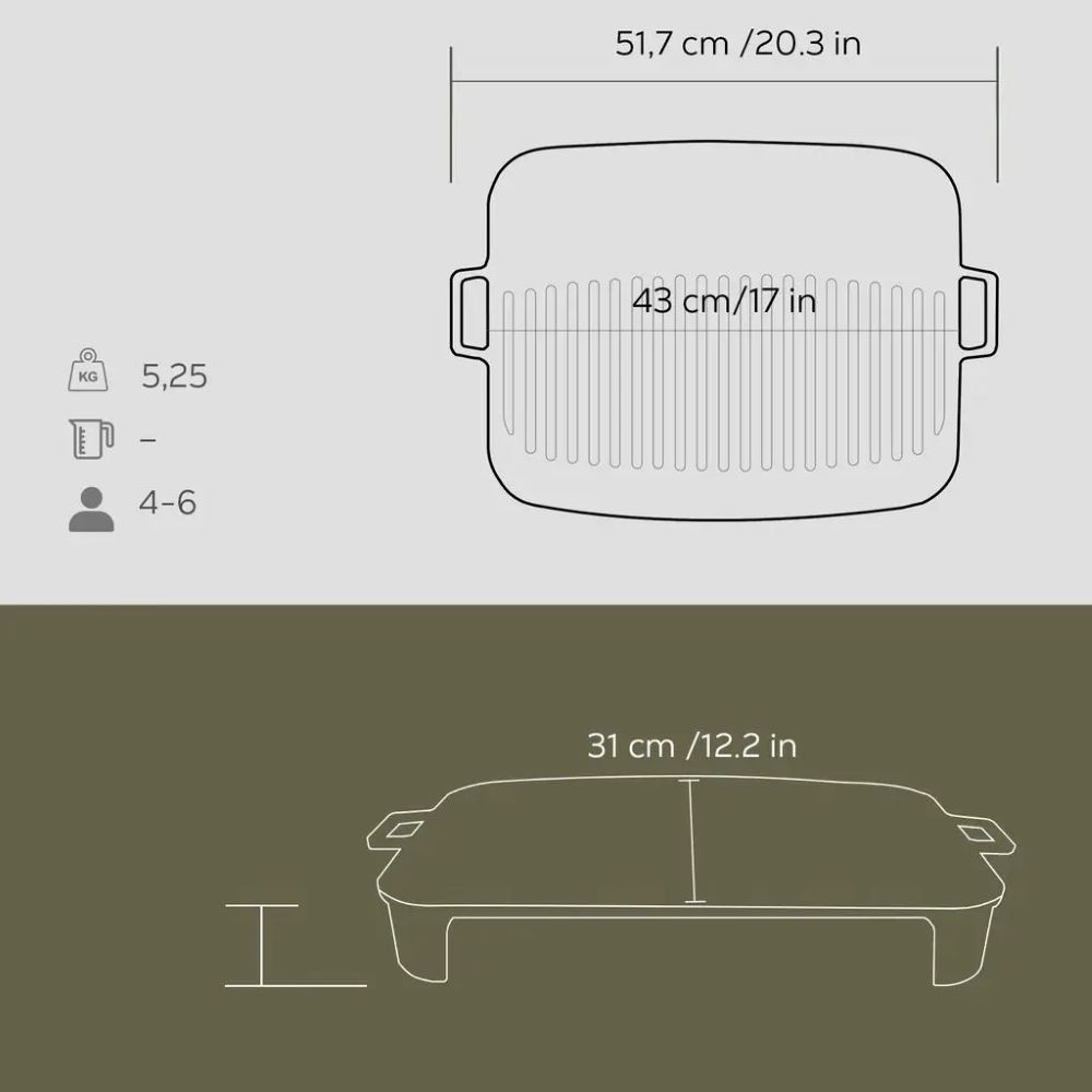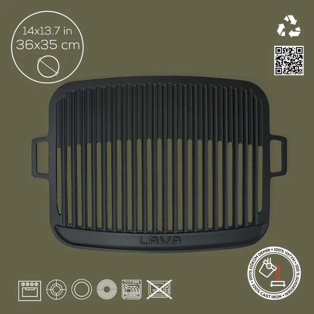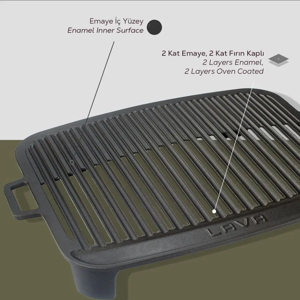 Grill, méret 43 x 31 cm, zománcozott öntöttvasból, Lava márka.