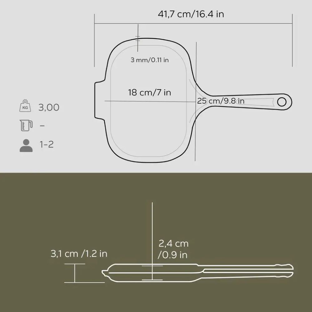 Lava Toaster serpenyő, anyaga öntvény, méretei 18 x 26 cm.