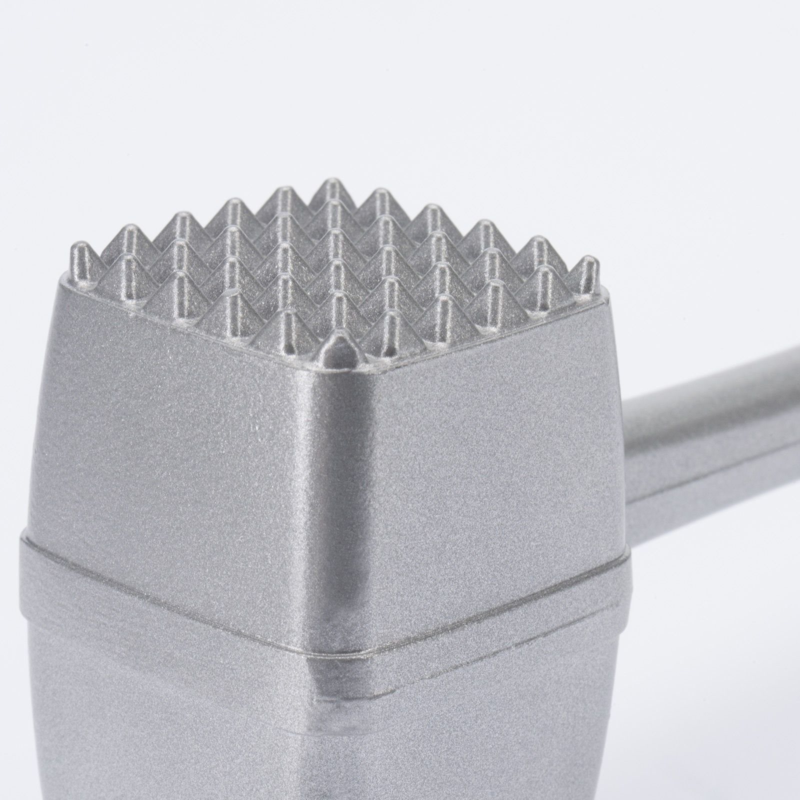 A Westmark húsklopfoló, anyaga alumínium, 2 különböző felülettel a hús ütésére (az egyik durva felépítésű, hogy megpuhítsa a húst, a másik pedig kis tüskékkel van ellátva). A tüskék rozsdamentes acélból készülnek.
