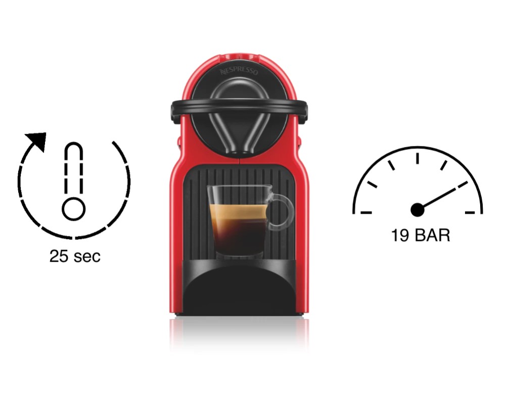 A Nespresso Inissia mindig emlékezetes kávét főz, akár egy tapasztalt barista, köszönhetően a One-touch operációs rendszernek és a szabadalmaztatott extrakciós rendszernek, amely eléri a 19 bar nyomást.