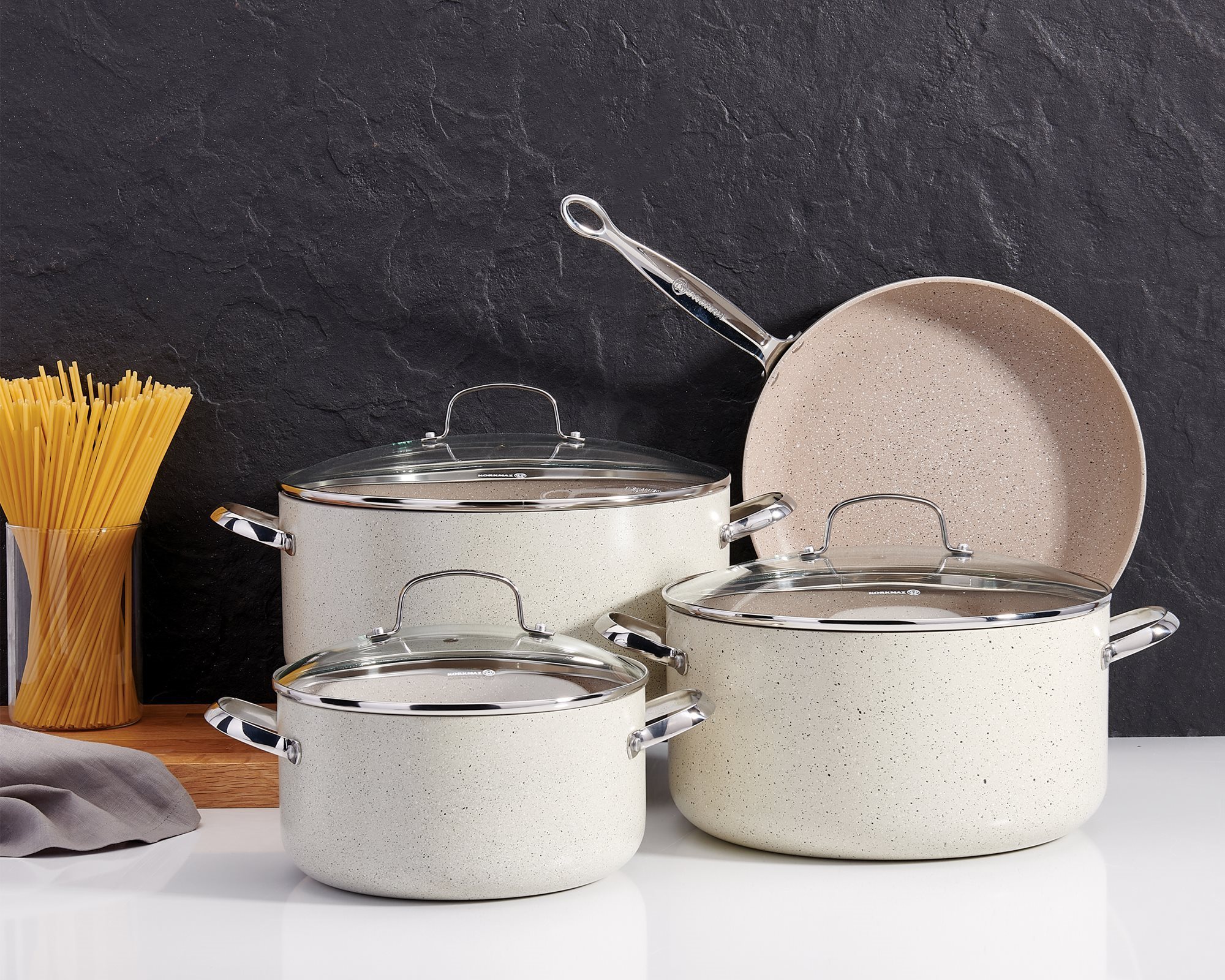 A Granita termékcsalád edényei újrahasznosított és újrahasznosítható anyagokból, környezetbarát technológiával készülnek, belül tapadás- és karcálló PTFE bevonattal, külső szilikon réteggel, amely ellenáll a magas hőmérsékletnek.