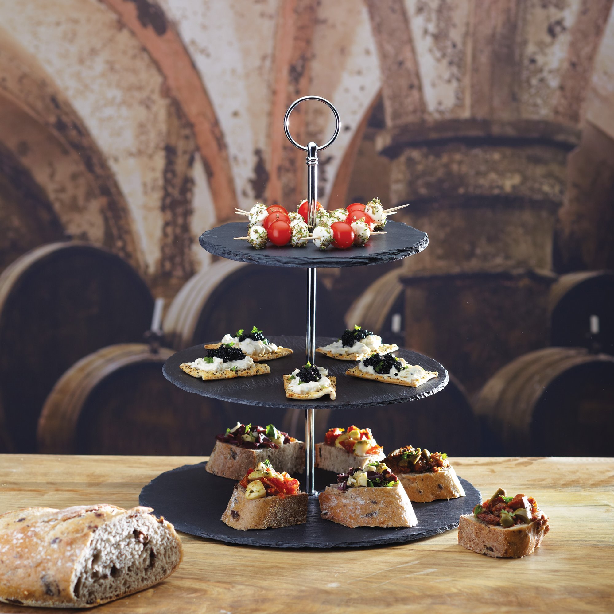 A Artesa márka stílusos és rendkívül hasznos megoldást mutat be Önnek, amely helyet takarít meg az ünnepekre jellemző zsúfolt asztalokon, és egyszerűségével és eleganciájával egyszerre lenyűgözi az asztalnál ülő összes vendéget. Ez egy kifinomult, 3 szintes tál sütemények, harapnivalók és gyümölcsök egyidejű tálalásához!