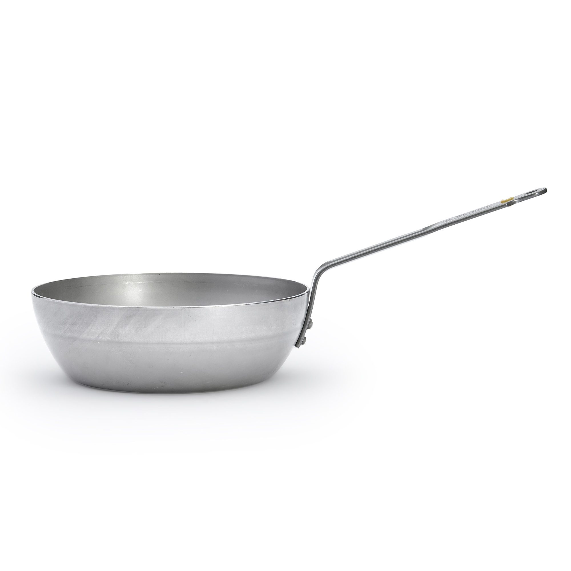 de Buyer márkájú, professzionális mély serpenyő, átmérője 24 cm, magassága 8 cm, 2,5 mm vastagságú acélból készült, amely nem deformálódik.