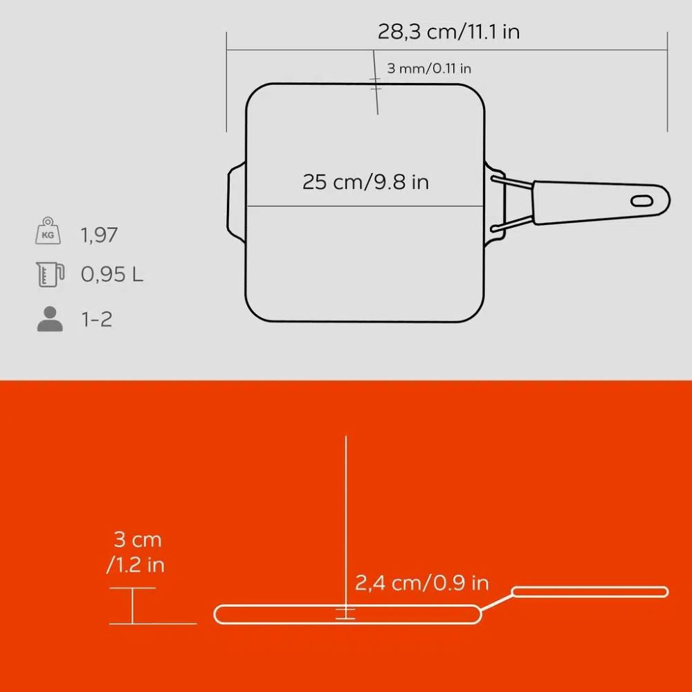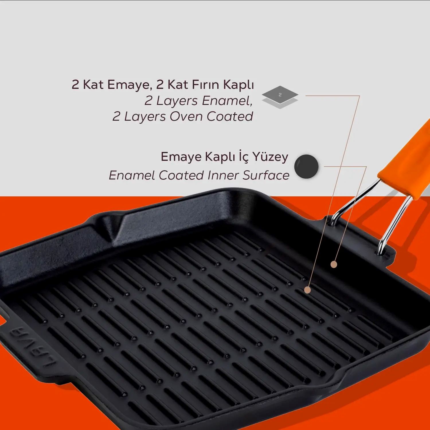 Grill serpenyő, négyzet alakú, 24 x 24 cm, narancssárga fogantyú - LAVA