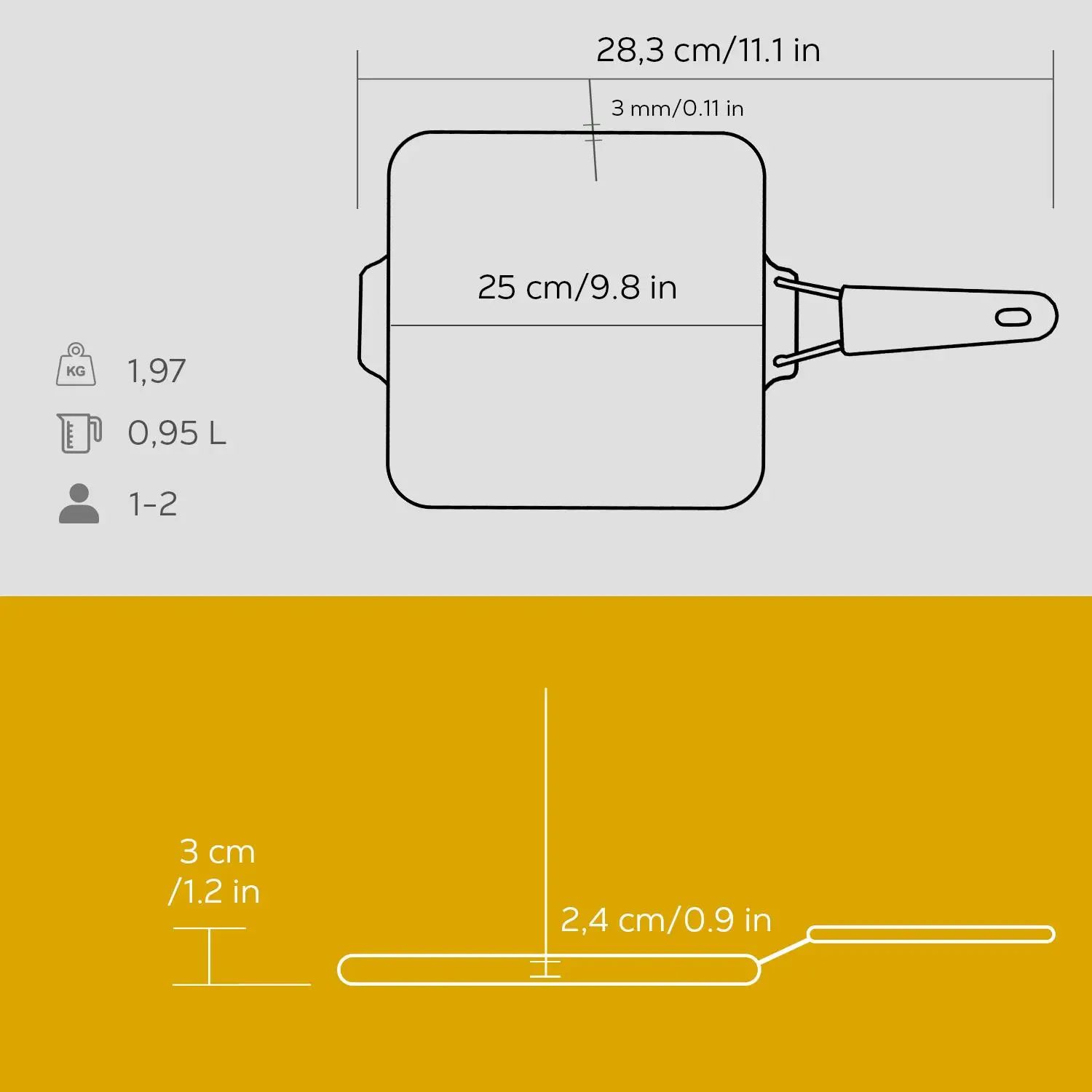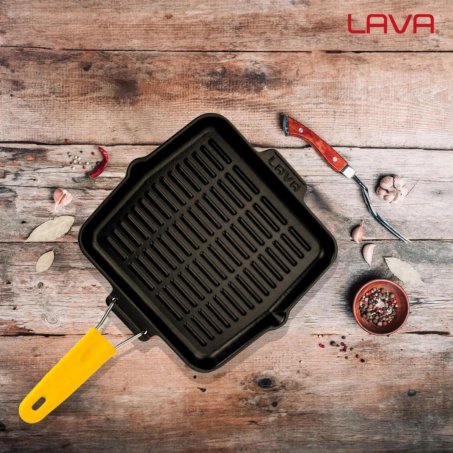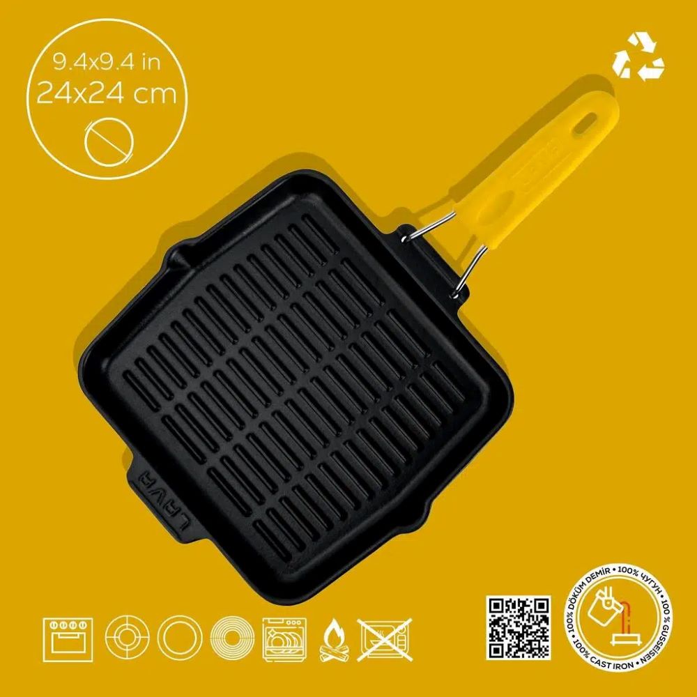 Grill serpenyő, négyzet, Láva márka, 24 x 24 cm méretű, öntöttvasból készült.