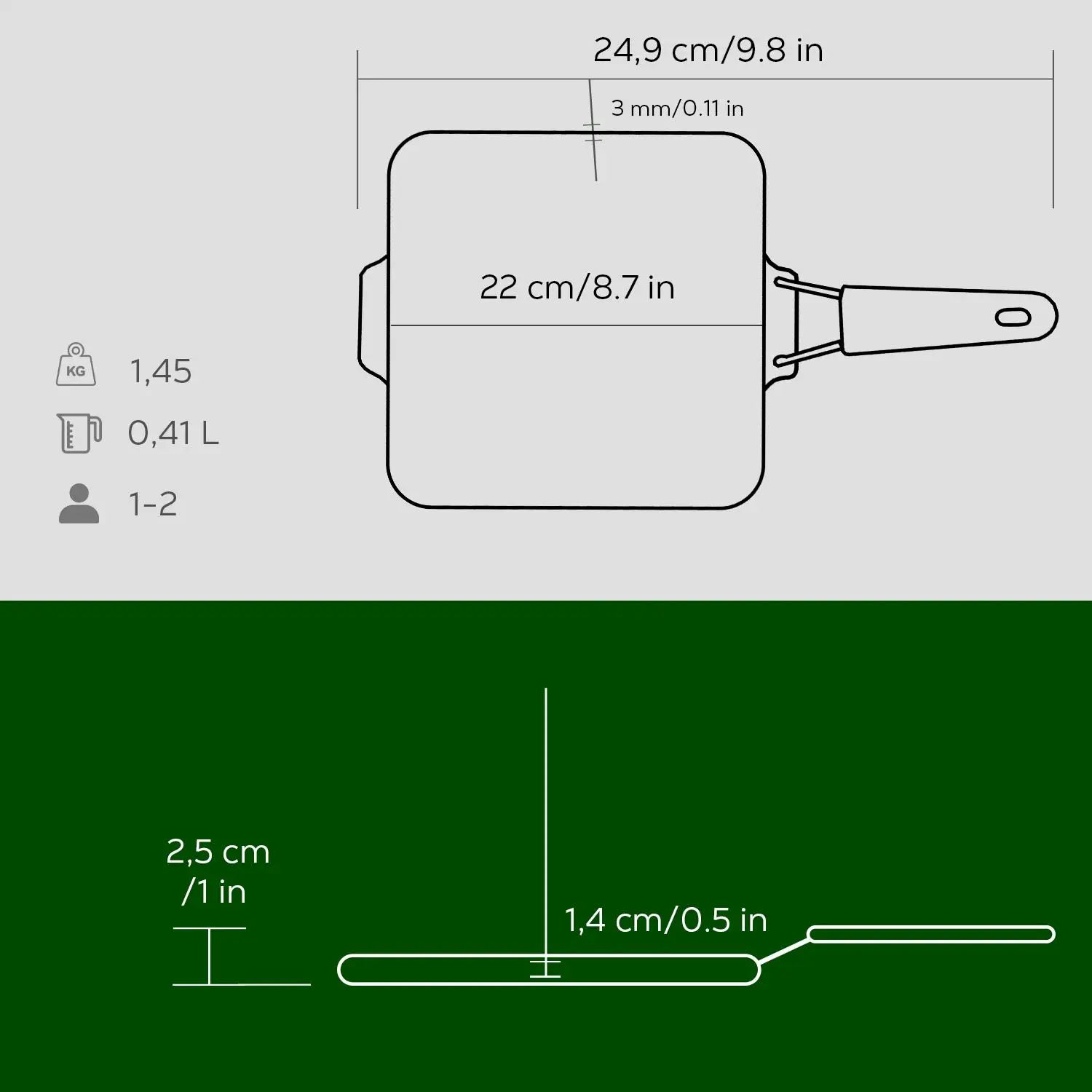 Külső méretek (hosszúság x szélesség x magasság): 24,9 x 24,8 x 2,5 cm.