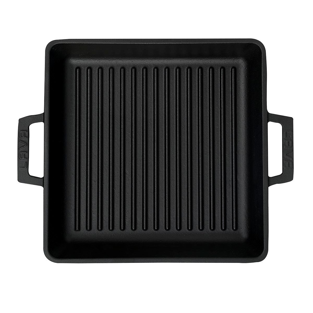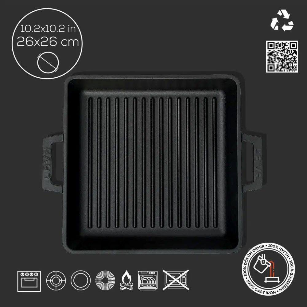 Négyzet alakú grillsütő tálca - Lava márkájú - méretei 26 x 26 cm, öntöttvasból.