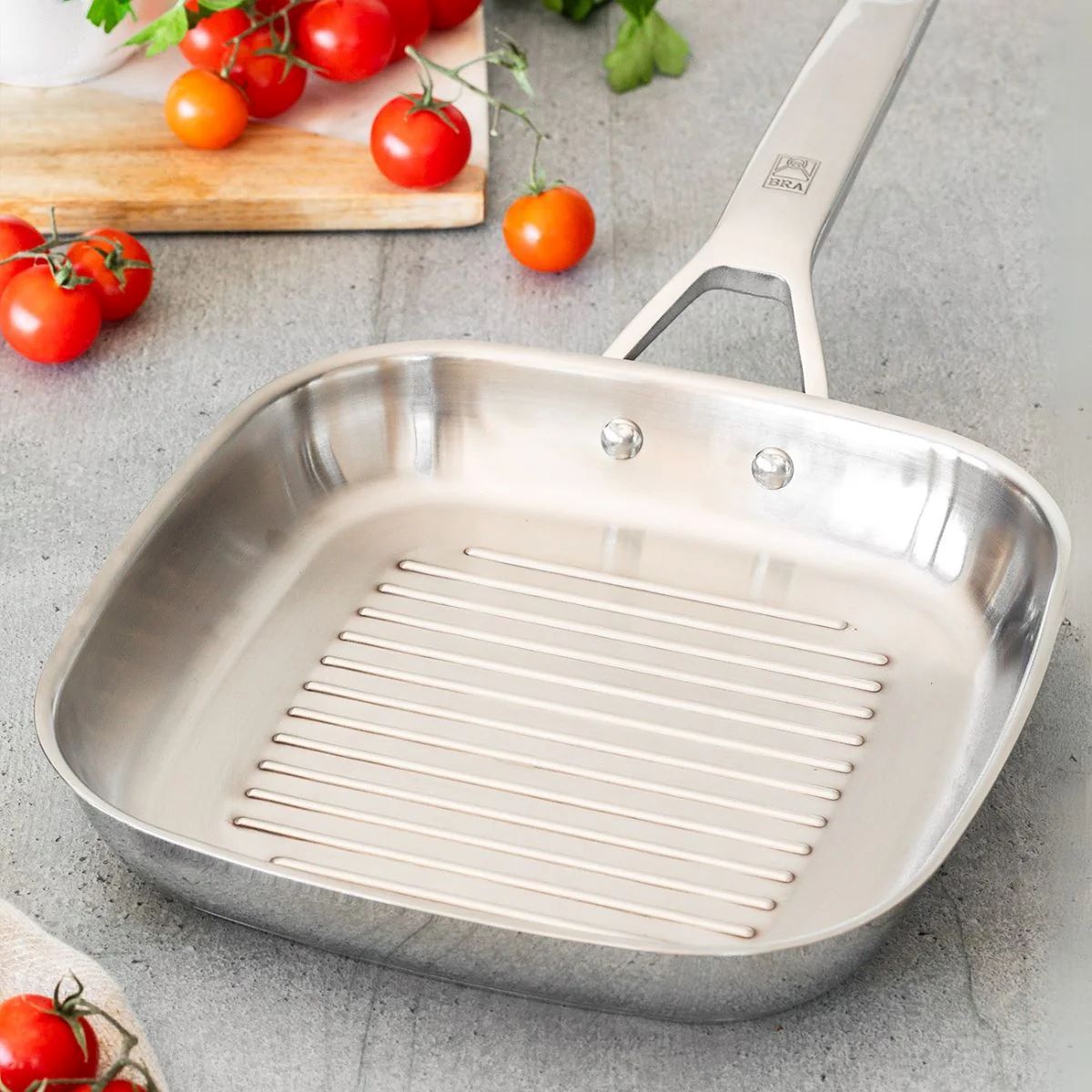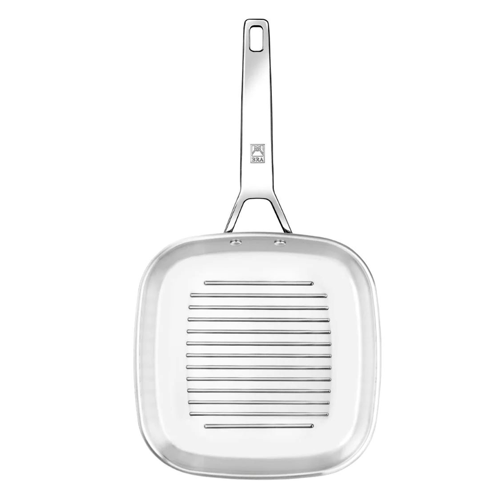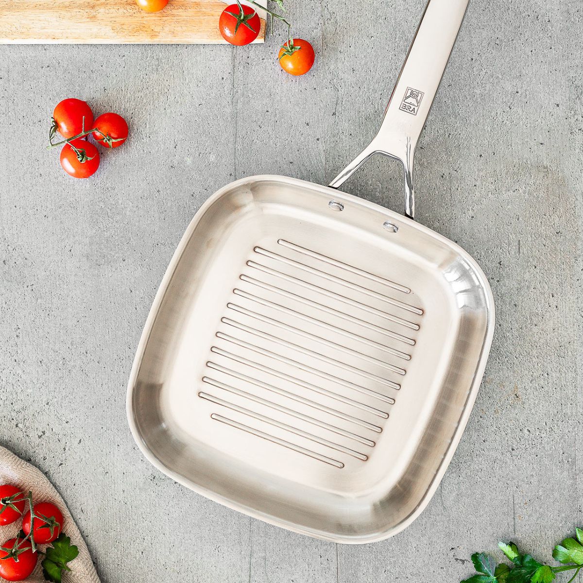 A Signature grill serpenyő, bordákkal nagyon elegáns és sokoldalú grill. 18/10 rozsdamentes acélból készült, ergonómikus rozsdamentes acél fogantyúval.