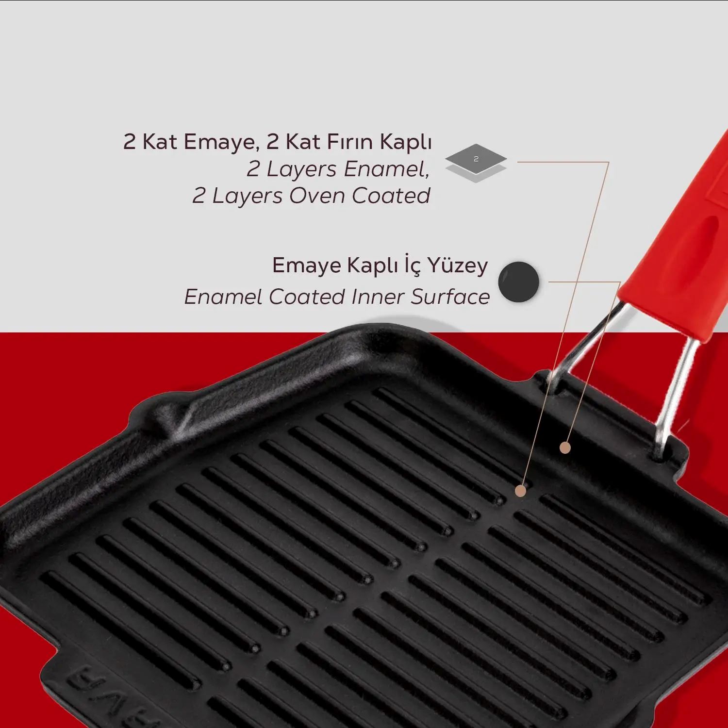 Lava márkájú, szögletes grillserpenyő, méretei 21 x 21 cm, öntöttvasból készült.