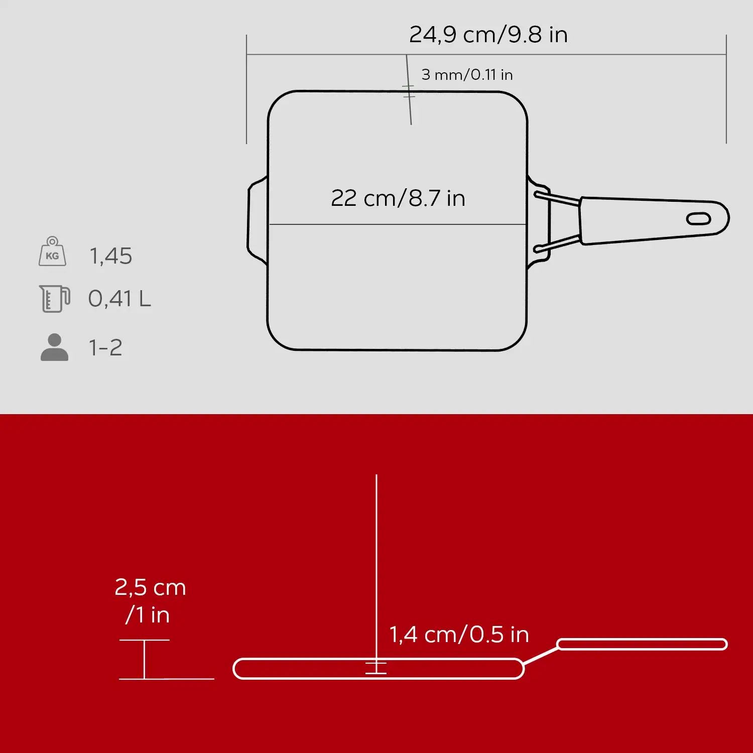 Belső méretek (hosszúság x szélesség x magasság): 22 x 20,2 x 1,4 cm.