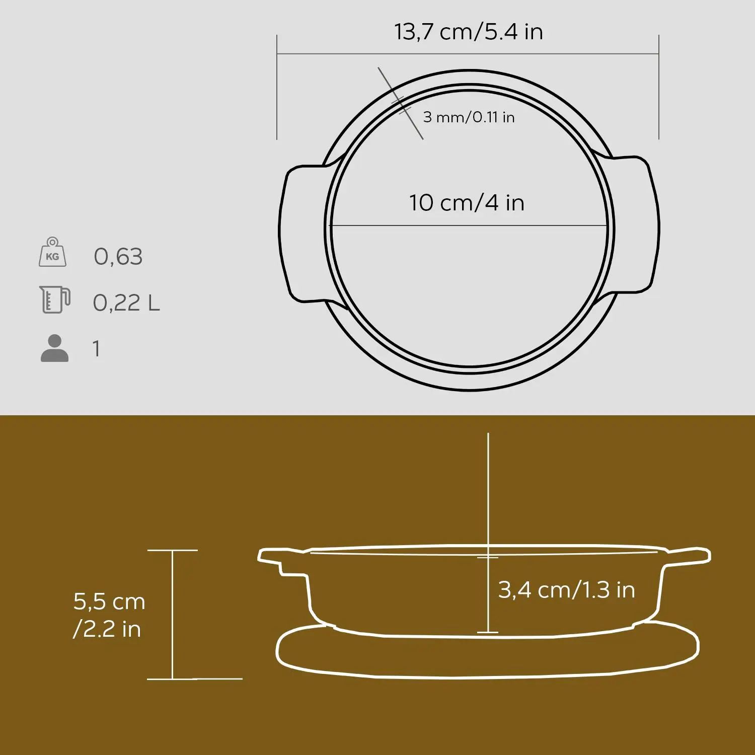 Lava, kerek mini lábas állvánnyal , átmérője 10 cm, űrtartalma 0,22 l, öntöttvasból. Az állvány bükkfából készült és átmérője 12 cm.
