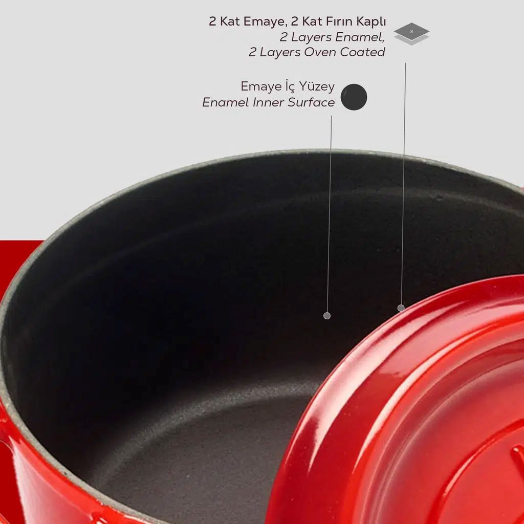 A Lava edények külső rétege üvegzománc, amely az üvegpor 750 - 850°C-on az edényre történő szórását jelenti. Ez az üvegpor az edény oldalára tapad és egy védőréteget képez, ugyanakkor hozzájárul a hő optimális eloszlásához.