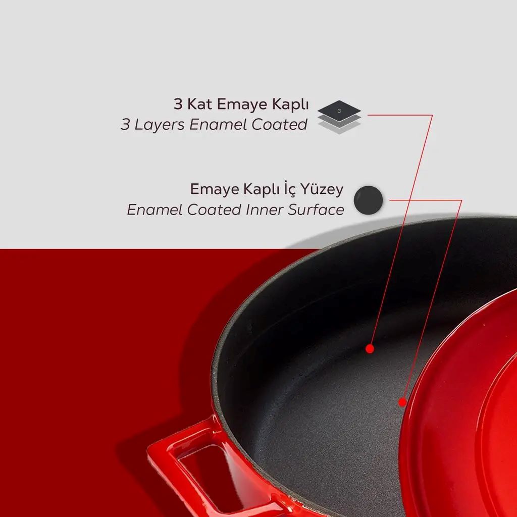 Az üveges zománcot, a Láva öntöttvas edények külső befejezéséhez használt anyagot üvegpor permetezésével nyerik 750-850 ° C hőmérsékleten. Az üvegpor a serpenyő felületéhez tapad, védőréteget hozva létre, amely segít a hő optimális elosztásában is.
