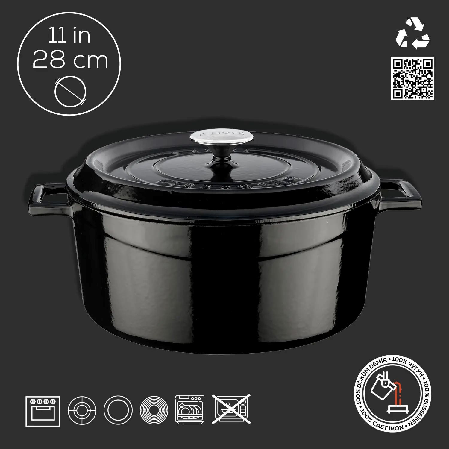Lava lábas, átmérője 28 cm, űrtartalma 6,7 l, anyaga öntvény.