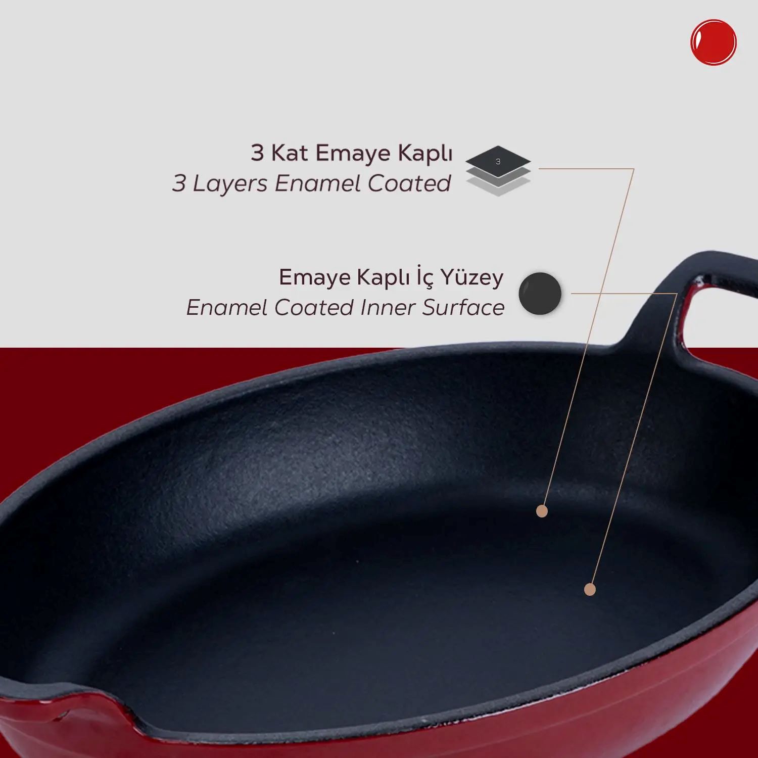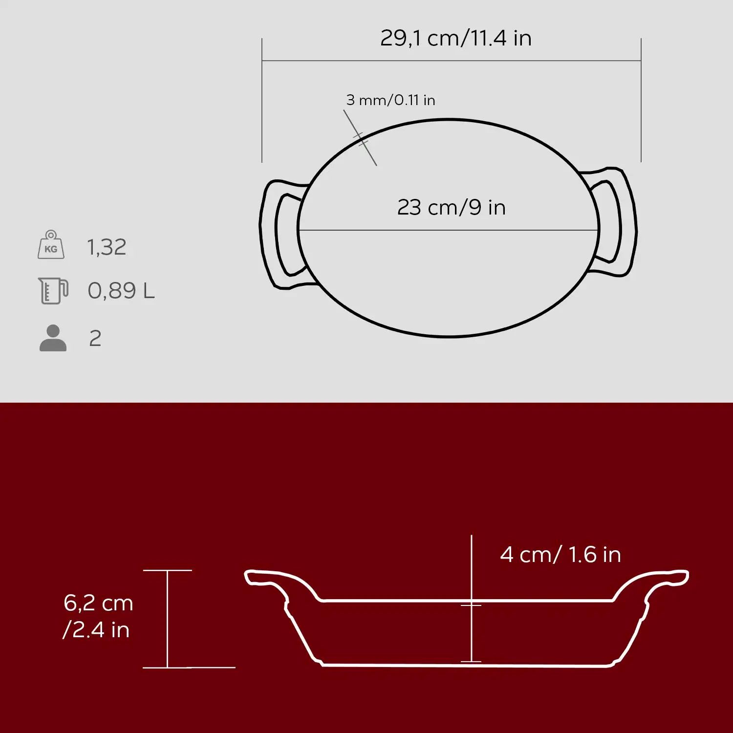 Lava kerek tál, Öntöttvasból készült, 23 x 17 cm belső méretek, 0,89 l kapacitású.
