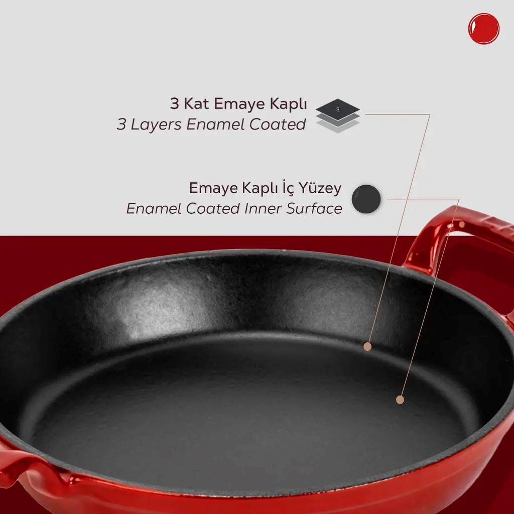 Az edény falai 3 mm vastagok, és belsejében a terméket egy fekete zománcréteggel bevonják, amely megkönnyíti a tapadásmentes felület kialakulását zsírral történő főzéskor.