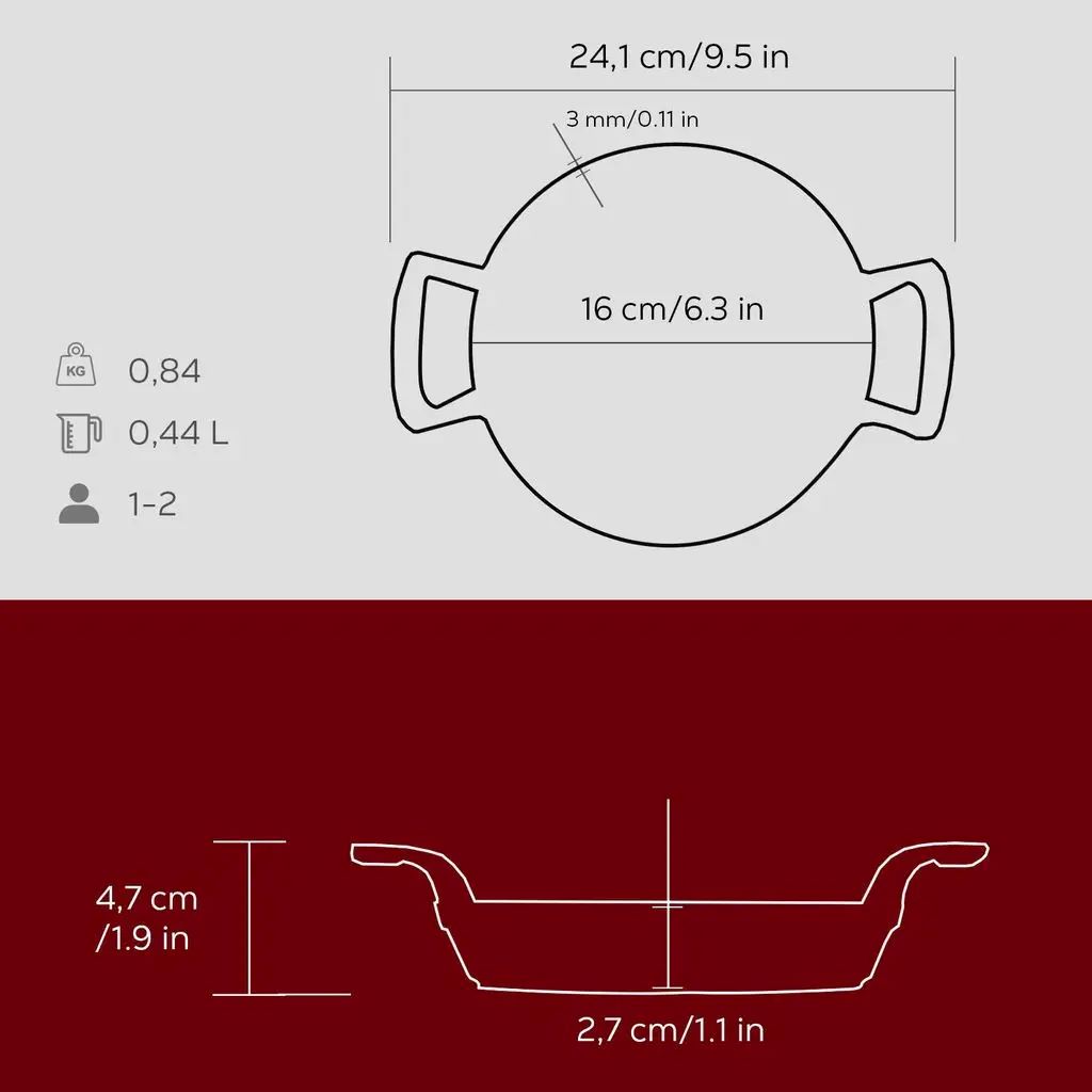 Az edény alapja vastagsága 3,5 mm, ami lehetővé teszi, hogy Lava edények minden típusú főzőlapon használhatók legyenek, beleértve az indukciós főzőlapokat is. Ne használja a mikrohullámú sütőben.