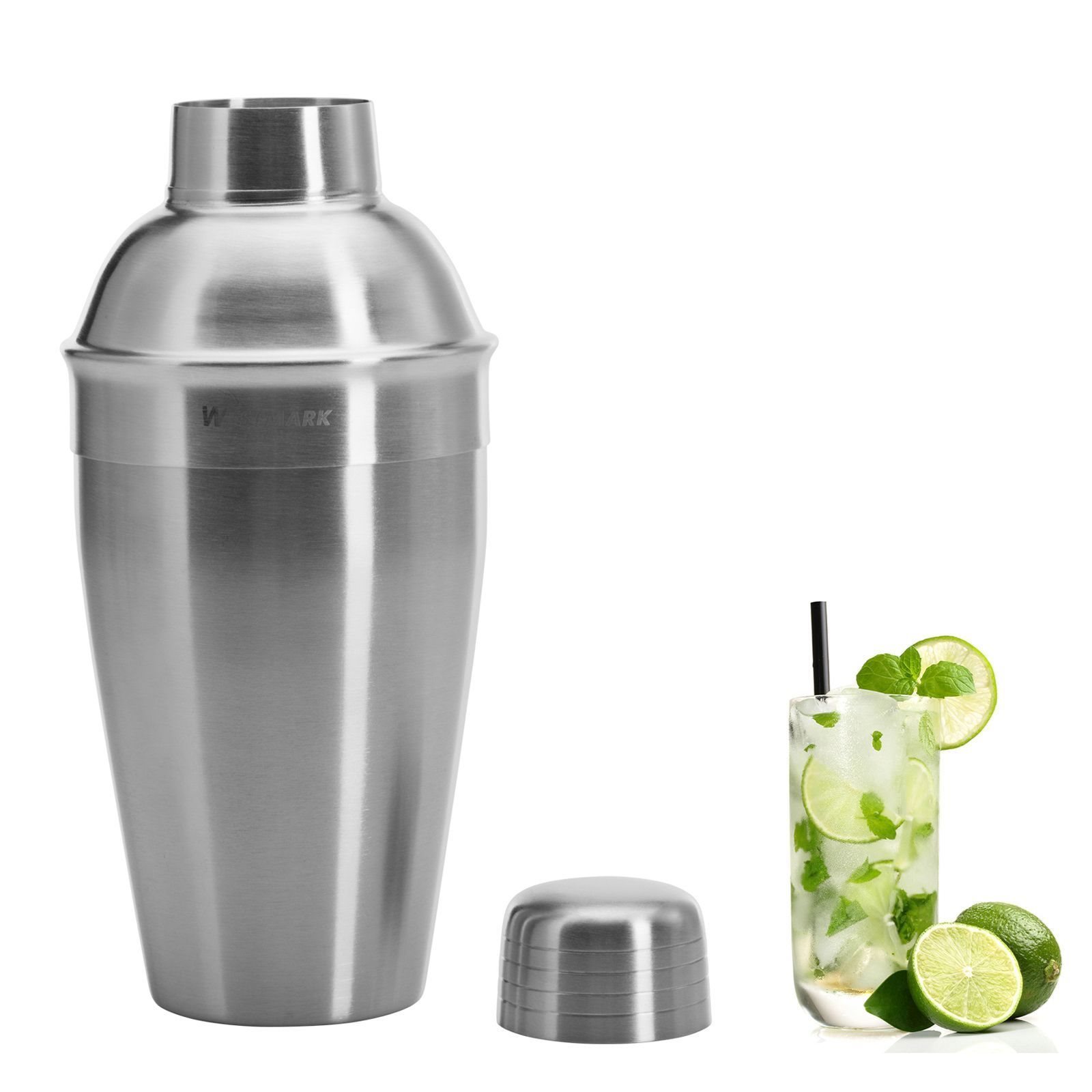 Westmark rozsdamentes acél shaker, méretei 205 x Ø 90 mm, űrtartalma 0,5 liter, levehető kupakkal és keverőkoronggal.