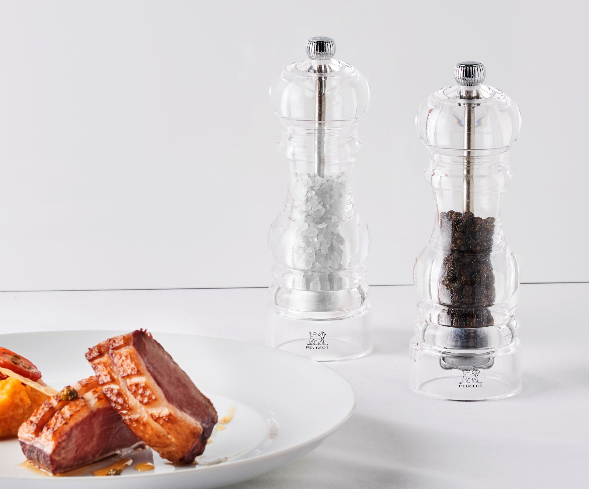 Peugeot só és borsőrlő készlet, magassága 18 cm, anyaga akril.
