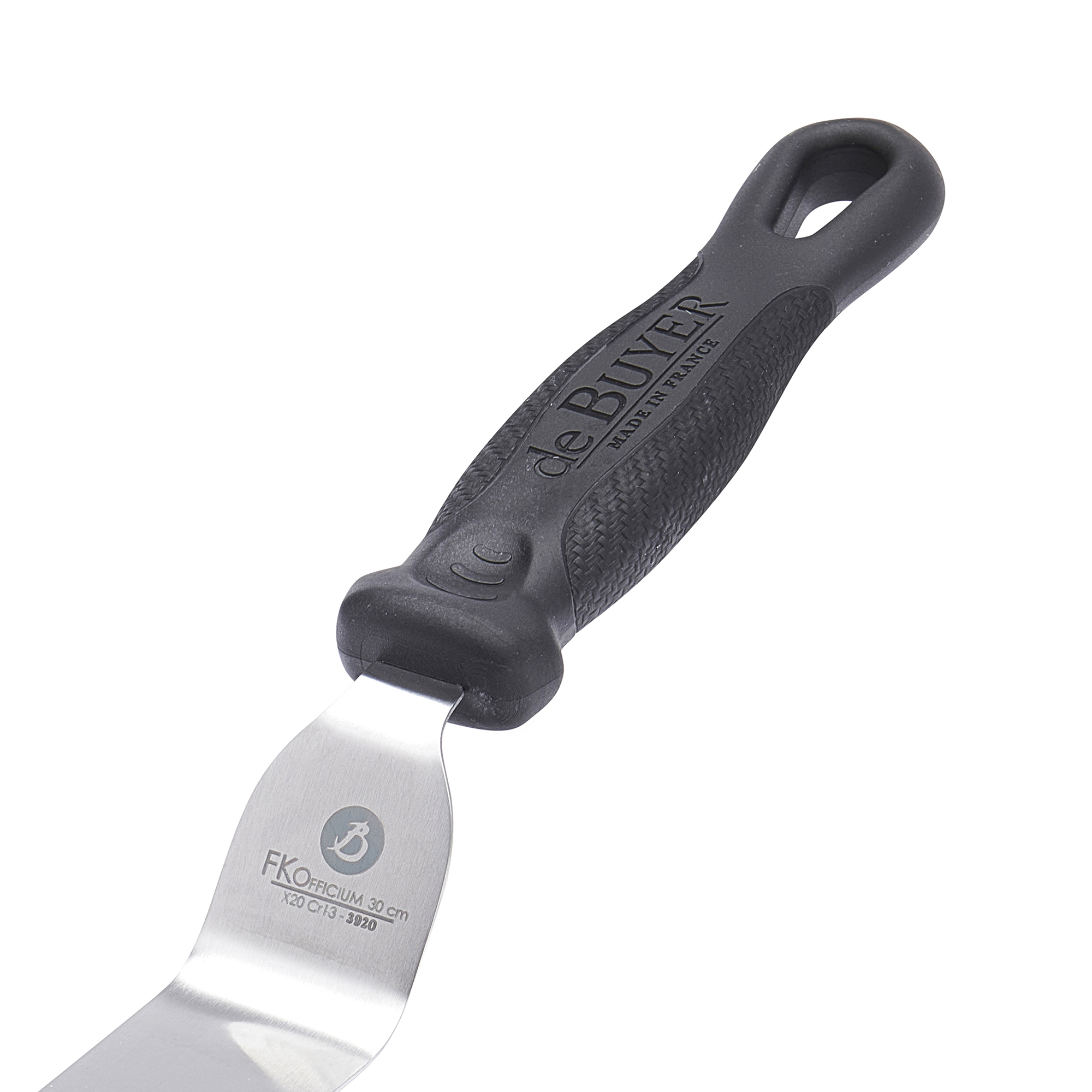 Rozsdamentes acélból készült tésztaspatulát, 30 cm hosszú, de Buyer márkájú.